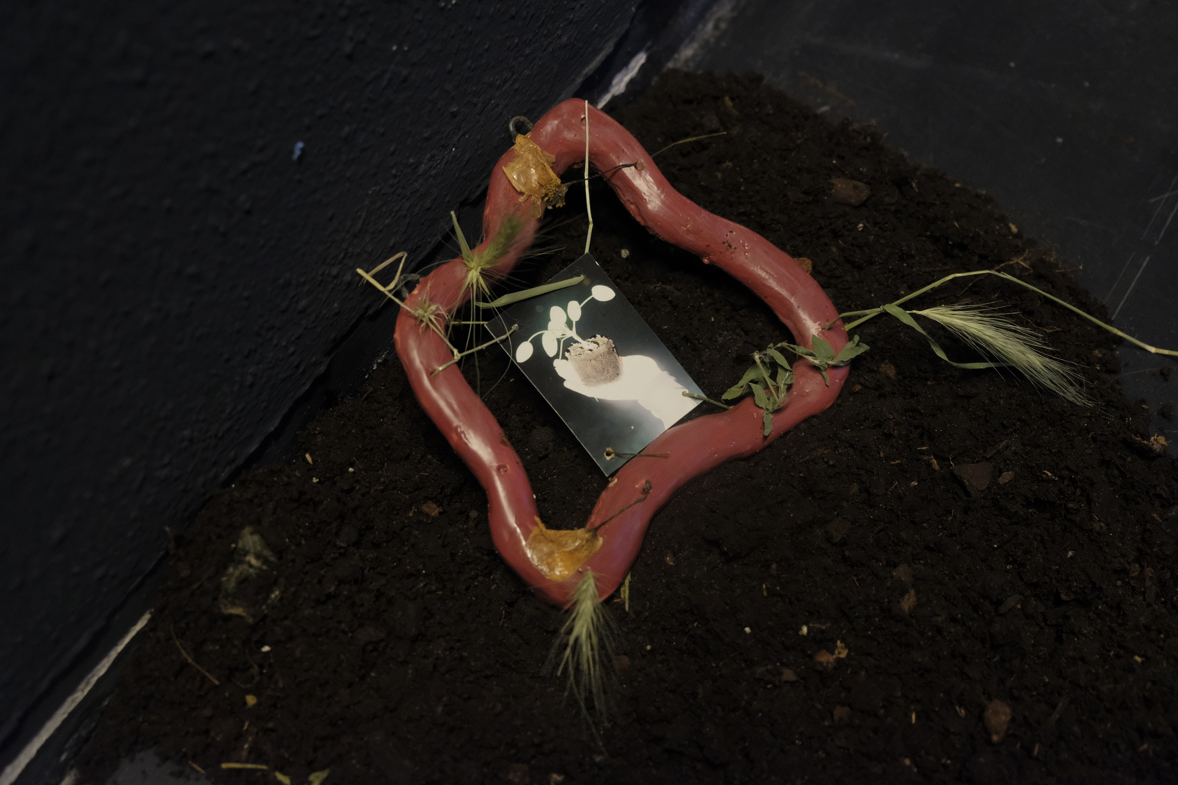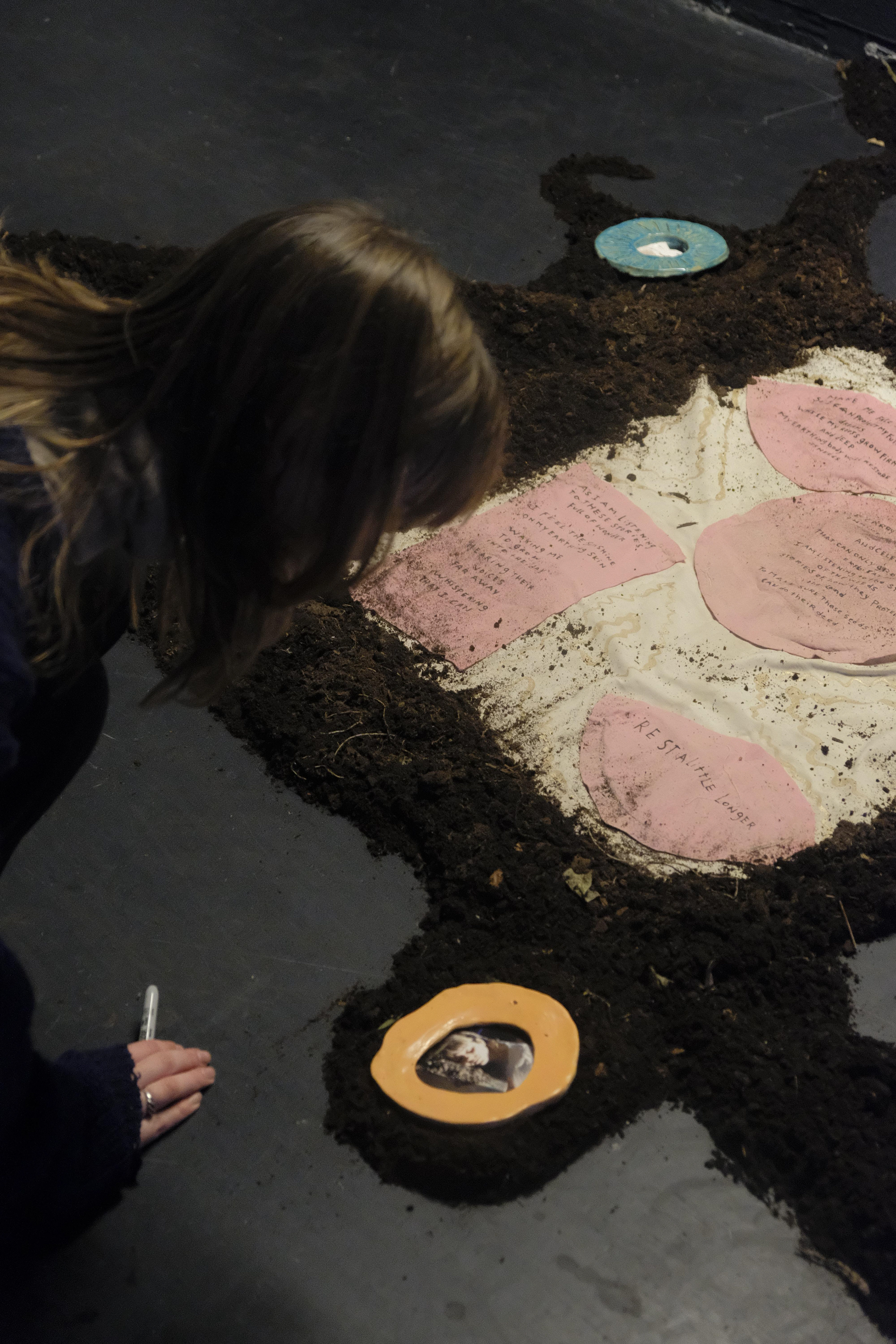 Soil, textile, ceramics, text and photography.